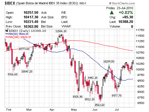 歐洲銀行監督委員會(CEBS)23日公布,91家接受壓力測試的銀行當中僅有7家未能通過檢驗,合計短缺資金額度為35億歐元。Reuters報導指出,分析師原先預期將有5-10家銀行無法過關,資金短缺規模將超過300億歐元。許多分析師認為上述壓力測試結果粉飾太平,無法反映真實情況。7家遭點名的銀行分別為德國Hypo Real Estate(已國有化)、希臘ATEbank以及下列五家西班牙銀行(Espiga、Diada、Banca Civica、Cajasur、Unnim)。