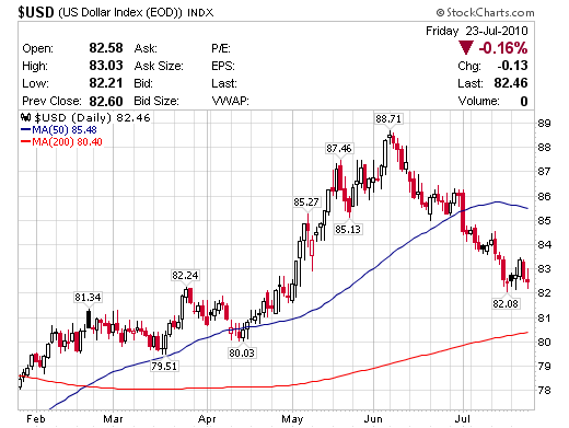 美元破頸線和50日均線後遍一路往下,資金流向風險性資產和原物料,尤其是農產品