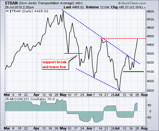 運輸指數再加把境 突破六月的高點,道式理論就會變成多頭的訊號