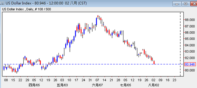 BAA利差持續下滑,更新7/29。AUD/JPY和美元指數都有利多頭