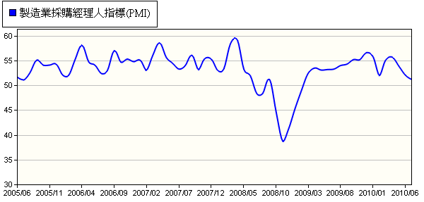 大陸7月製造業採購經理指數(PMI)為51.2,比6月下降0.9,連續第三個月下滑,顯示中國政府調控政策有成。