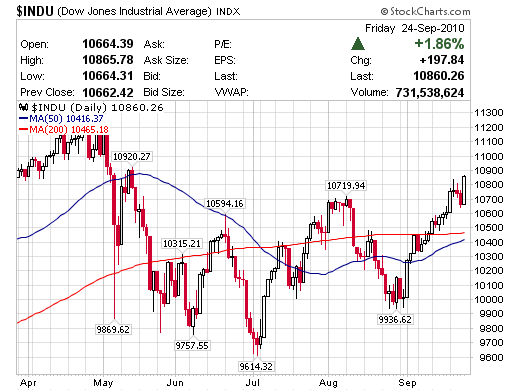 MarketWatch網站報導,花旗集團(Citigroup)17日發表研究報告指出,今(2010)年底標準普爾500指數可望以1,175點作收,明年底將再漲10%至1,300點。花旗表示可能導致美股表現不如預期的利空包括房價續跌以及就業市場續疲。標準普爾500指數17日上漲0.08%,收1,125.59點,創8月9日以來收盤新高;週線上漲1.45%,為連續第3週收漲。