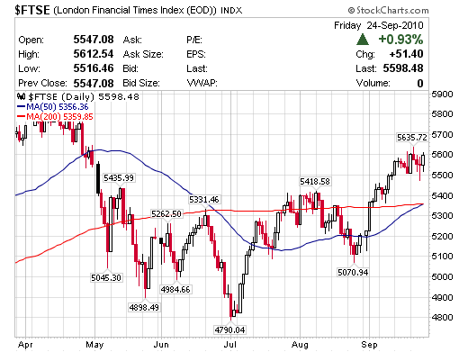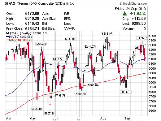 德國智庫Ifo 24日公佈,經過季節性因素修正後,2010年9月份景氣判斷指數自前月的106.7上揚至106.8,連續第4個月走揚並再度創下07年6月以來新高。根據Thomson Reuters統計,經濟學家原本預估指數將下滑至106.2。這項指數的調查涵蓋了製造、建築、批發與零售各產業的7,000位主管,以2000年為100