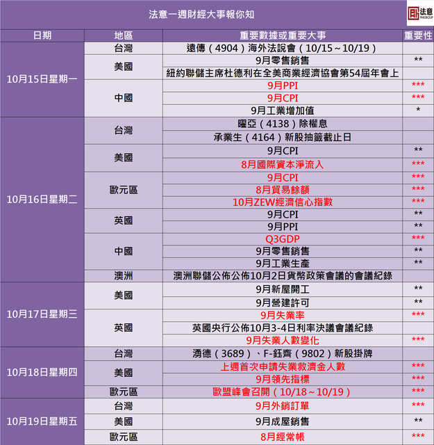 歐元區 9月CPI 8月貿易餘額 10月ZEW經濟信心指數