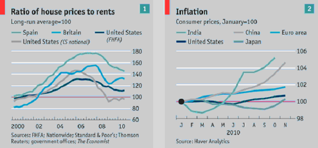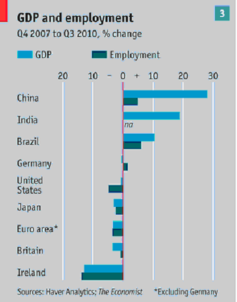 強勁的需求和寬鬆的貨幣政策加速了中印的發展,大多數富裕國家在2010年年底的出口和就業率攀升,但仍未到達金融海嘯前的水準。