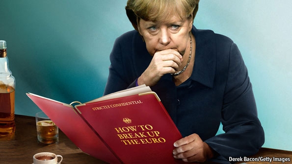 說不定,安格拉•梅克爾目前甚至在考慮如何讓歐元區解體。歐元區對於救援方案爭論不休,結果這些方案仍然無法解決問題。有鑑於此,這位堅忍的德國總理一定動心了,想要將歐元區解體。她捍衛本國利益,不料卻被國內的批評家貼上了軟弱的標籤,她一定對此感到厭倦了。她犧牲德國財富試圖救援他國,不料卻恰恰被其中某些國家描述為納粹分子,她一定對此感到憤恨了。