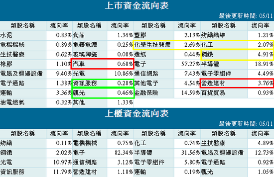 今日弱勢股:觀光類股,電腦週邊類股。觀光最近比較弱,H1N1應該還是有影響到投資意願。
