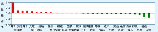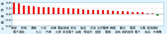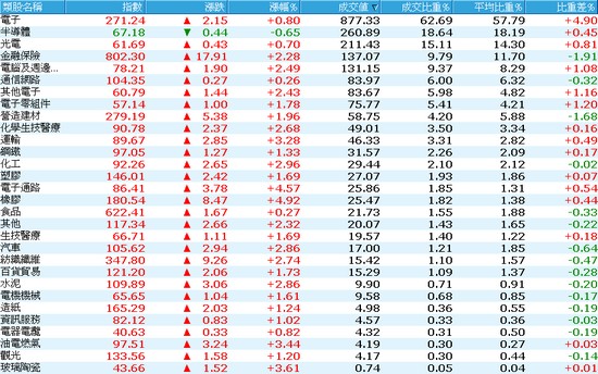 而漲跌幅排行看起來,傳產電子的子族群各擁題材。