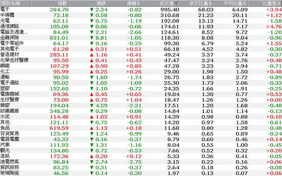 7.30類股資金流向速覽 / 歐斯麥:空方快攻。