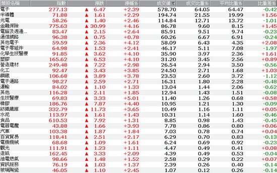 食品週五強勢,今日休息,而觀光則是維持弱勢,還真弱呀。
