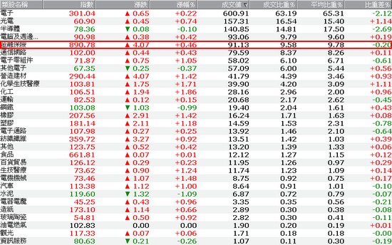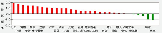 化學化工趨勢還是向上,今日表現最佳。紙類法人動作依舊。