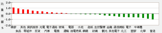 塑膠類股四寶有愛,價漲量平。紡織股亦收十字,法人沒什麼著墨。