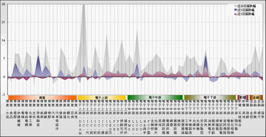 類股來看,近五日來看,資金在傳產流動,不過近一日看起來有點又回流電子的感覺。