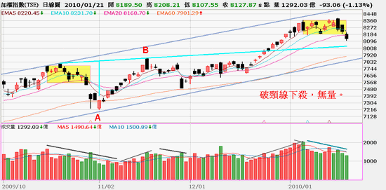 均線,五日線,十日線,下彎,代表短期趨勢向下,