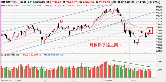 三大法人的比重又降低了,量縮到850億,量縮過月均線,上有季線跟半年線,短線上形成上有壓下有撐的局面。