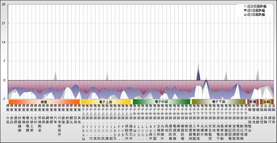 漲跌幅方面,光碟機、電信服務、百貨是稍微抗跌的。