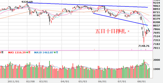 日線上,緩跌中,邊跌邊量增,技術上,五日線十日線又再度失守,