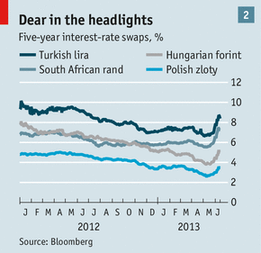儘管如此,美聯儲逐漸減少購買債券的預期似乎意味著美國國債收益率開始緩慢提高到更正常的水準。法國興業銀行的Kit Juckes表示這不會一蹴而就。利率會上下波動以發現正確的價格。之前由於價格長期缺少這樣的大波動,富裕國家的投資者在新興市場投資債券感到十分舒適稱心。隨著波動愈來愈大,投資者參與冒險的意願也越來越低。更加嚴格的資本要求使得銀行也沒有太大熱情去買入並持有投資者拋售的資產,這些都只會加劇債券市場價格的波動。