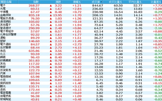 今日強勢股:生技、觀光、光電、電子通路。